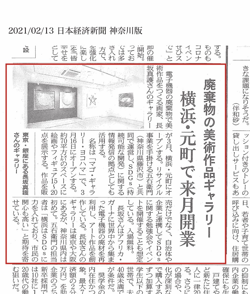 「廃棄物の美術作品ギャラリー 横浜・元町で来月開業」として、MAGO GALLERY YOKOHAMAが掲載されました。